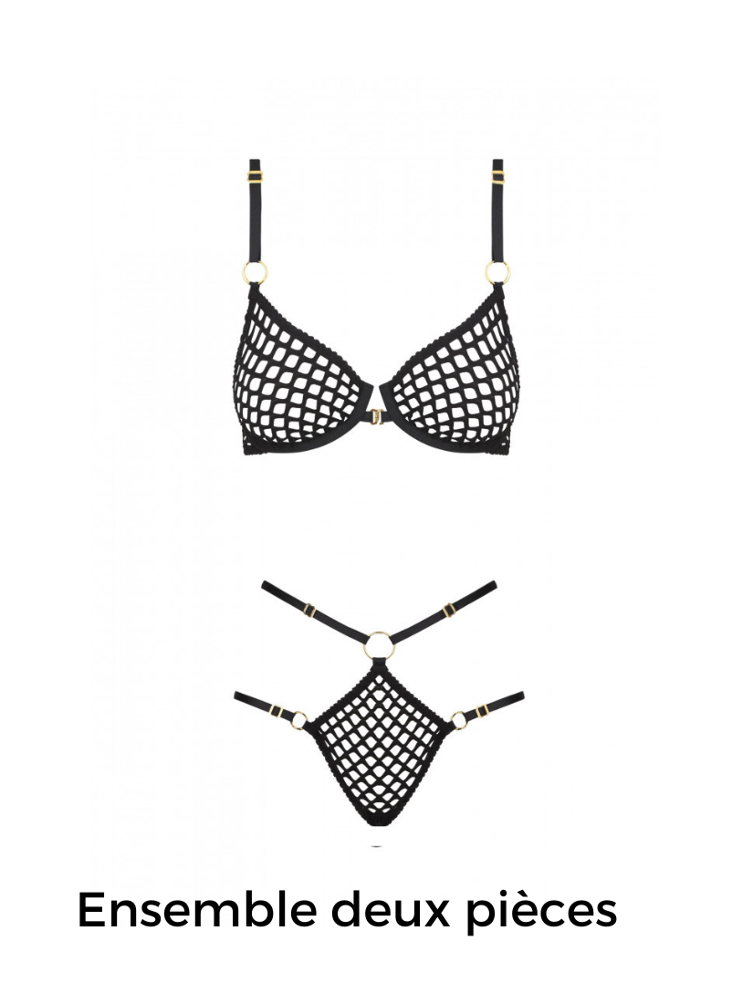 Four-piece lingerie set with thigh loop - INTIME - Black