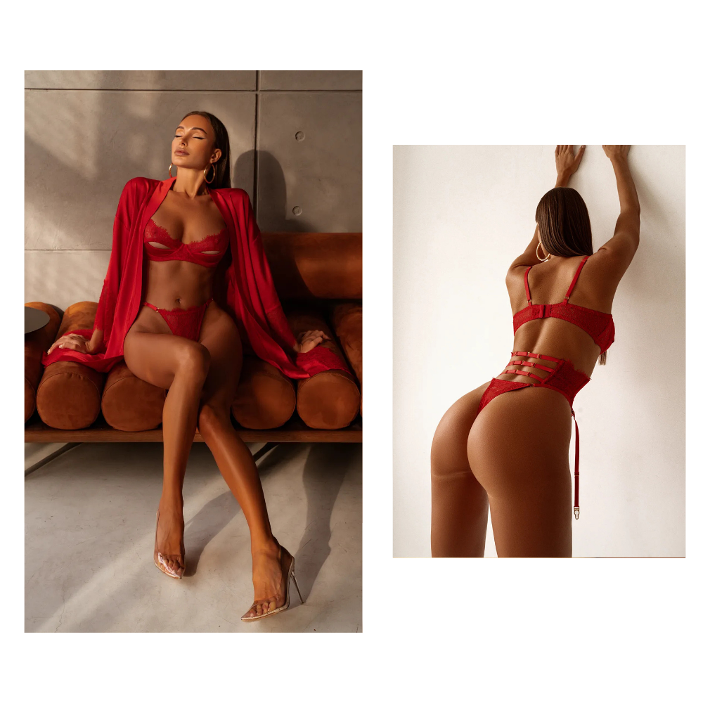 Do you want lingerie that highlights your curves while remaining incredibly elegant? The ENVY Rouge set is designed to refine and enhance your figure with its shaping garter belt and delicate lace. A perfect balance between comfort and sensuality.